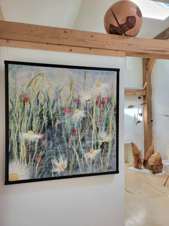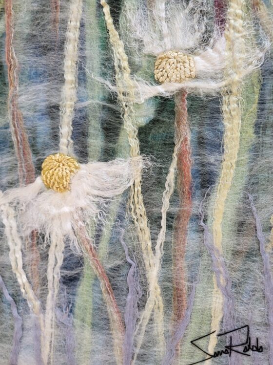 Created by Sanna Rahola using hand dyed wool, silk, linen and mohair with in a bespoke pickled black walnut frame created by Douglas Drdul.
